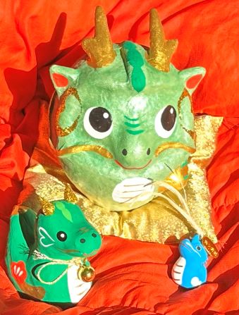 今年は辰年、みんなにプレゼントしたドラゴンたちとドラゴンだるま。